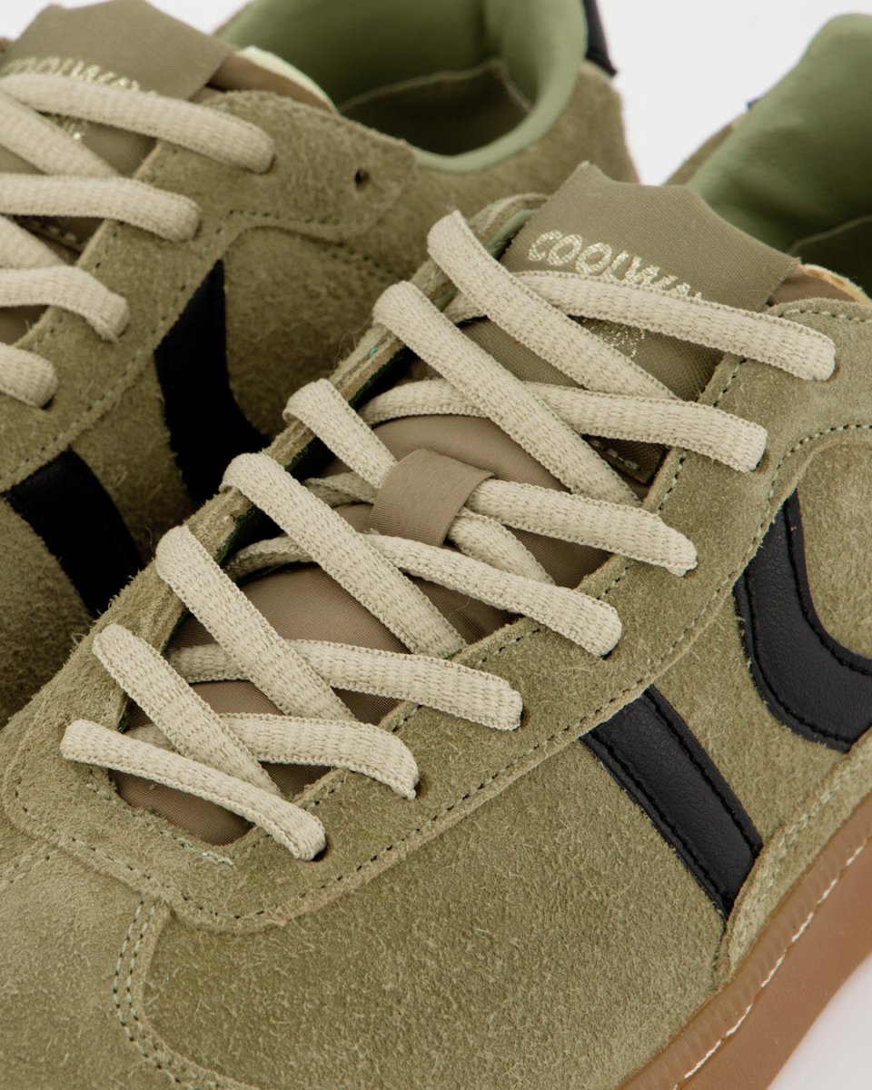Zapatilla deportiva de serraje en colores vibrantes con detalles en contraste blanco. Lengüeta acolchada de textil nylon al tono del corte dejando ver en el borde el “foam” del interior, reforzando así la estética retro. Vistas del forro en piel. Cordones planos de algodón en dos tonos intercambiables, uno de ellos blanco y otro al tono del corte. Cuello ligeramente acolchado. Suela flexible de goma/caucho que aporta durabilidad y agarre. Cuenta con el nombre del modelo “DUCK” en lateral en oro y etiqueta tejida en la lengüeta. La plantilla de eva de baja densidad mejora la amortiguación.