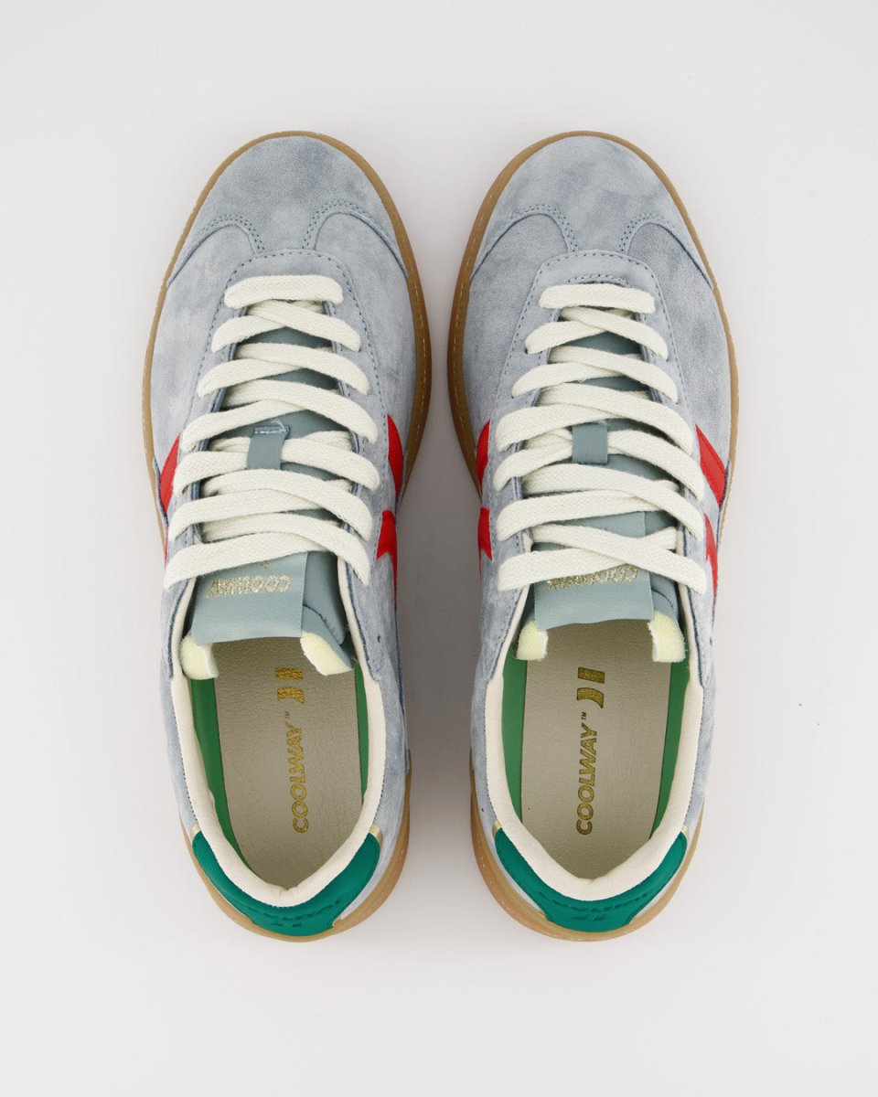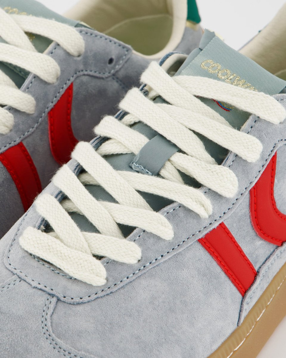 Zapatilla deportiva de serraje en colores vibrantes con detalles en contraste blanco. Lengüeta acolchada de textil nylon al tono del corte dejando ver en el borde el “foam” del interior, reforzando así la estética retro. Vistas del forro en piel. Cordones planos de algodón en dos tonos intercambiables, uno de ellos blanco y otro al tono del corte. Cuello ligeramente acolchado. Suela flexible de goma/caucho que aporta durabilidad y agarre. Cuenta con el nombre del modelo “DUCK” en lateral en oro y etiqueta tejida en la lengüeta. La plantilla de eva de baja densidad mejora la amortiguación.