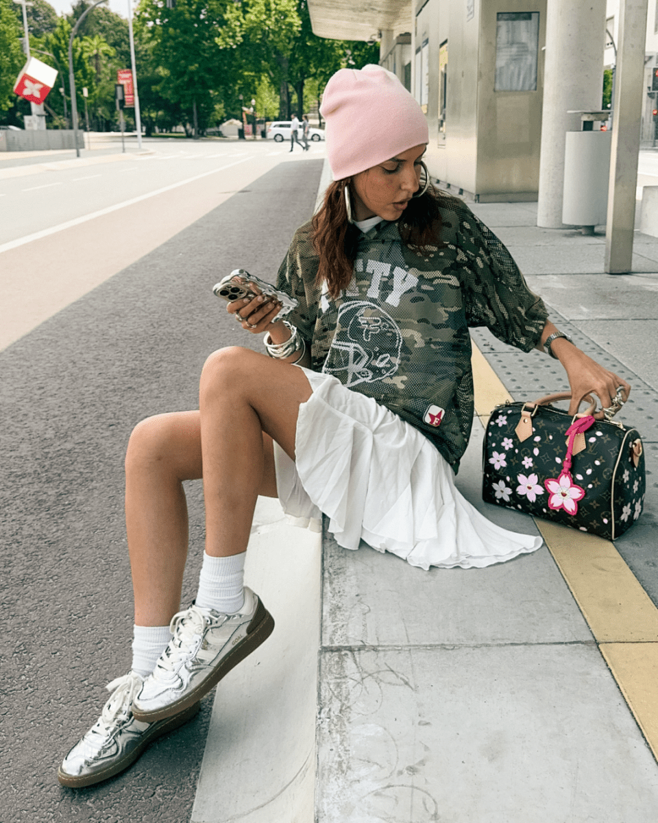 Zapatilla deportiva de piel con detalles en contraste de color. Lengüeta de piel y preformada con un acolchado figurado. Vistas del forro en piel. Cordones planos de algodón en dos tonos intercambiables. Cuello ligeramente acolchado. La parte delantera lleva un refuerzo de pespuntes. Suela flexible de goma/caucho que aporta durabilidad y agarre. Cuenta con el nombre del modelo “GOAL” en lateral en oro viejo.