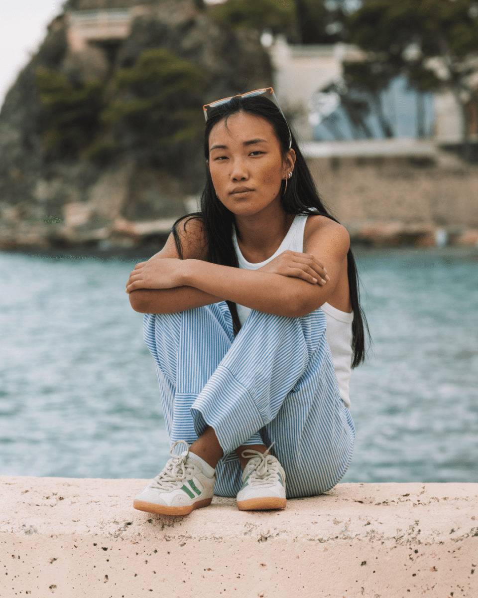 Zapatillas deportivas bajas de piel tipo serraje combinado con nylon. Corte sencillo y clásico con cierre de cordones. La pieza de talón y el logo contrastan tanto por color como por textura. La plantilla de foam acolchada lleva impreso un diseño multilogo. El forro de piel contrasta en la parte trasera siguiendo el tono del corte. La suela de goma ligera en colores miel lleva un pespunte en la base que refuerza la unión entre el corte y la misma suela.