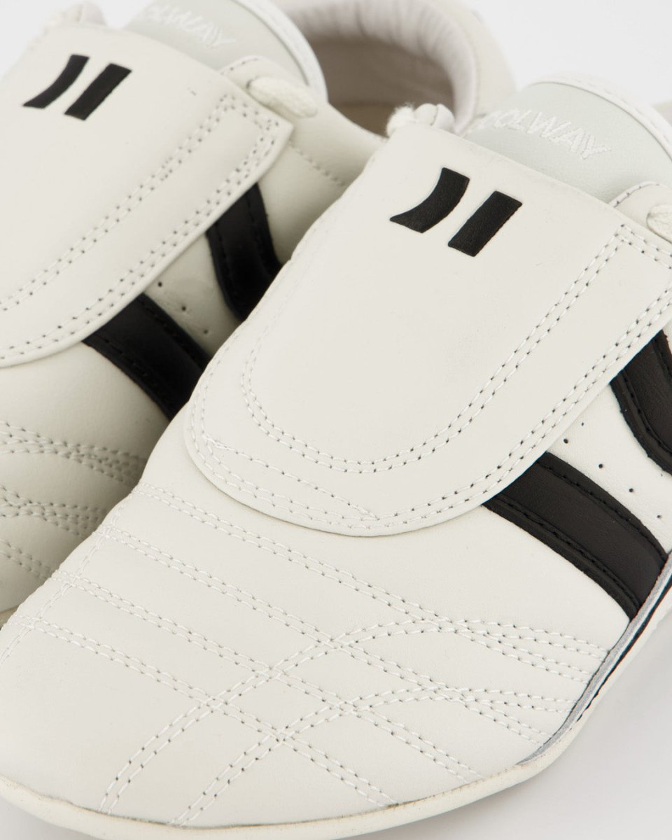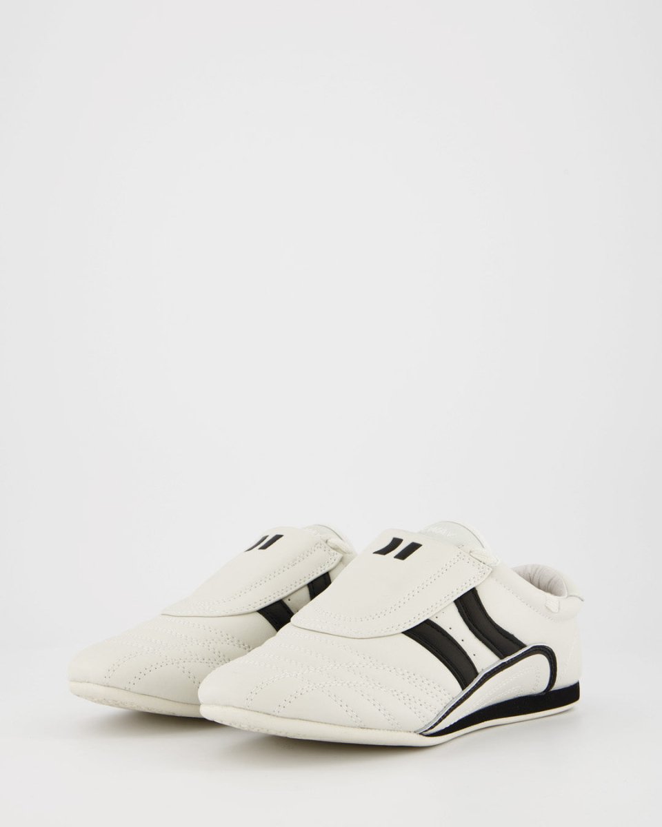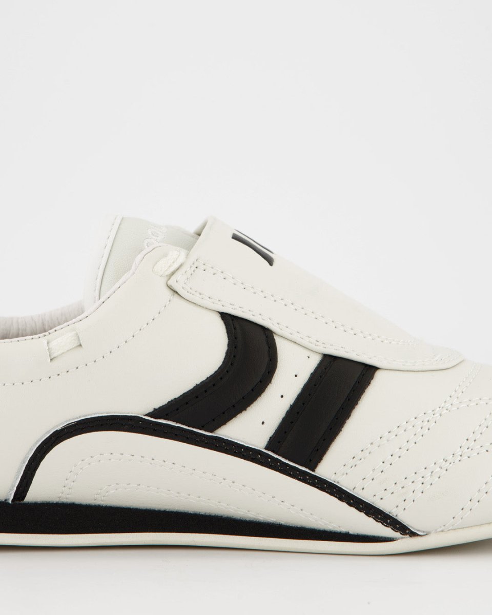 Zapatillas deportivas extraplanas/ultrafinas. Corte de piel pespunteado y con cierre de solapa con cordonera oculta para mejor ajuste. Forro ligeramente acolchado de piel y suela fina de goma y Eva. Reedición de la icónica zapatilla de la marca de los años 2000. Inspirado en las zapatillas de taekwondo.